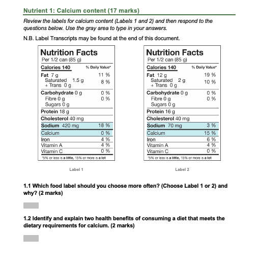 Identify categories of information found on food labels